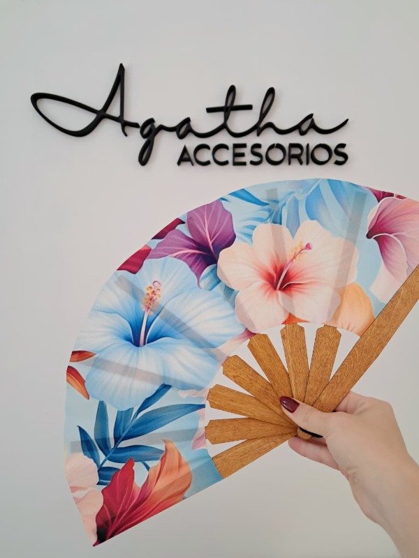El diseño se aplica únicamente en el frente del abanico. El reverso es de tela blanca lisa con las varillas visibles.